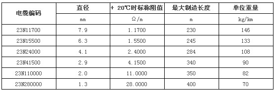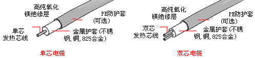 600℃;导体电阻值的范围从28000Ω/km到19.2Ω/km;矿物绝缘电缆具有优良的机械强度,耐腐蚀。飞拓电气提供的加热电缆能满足不同功率的需要。